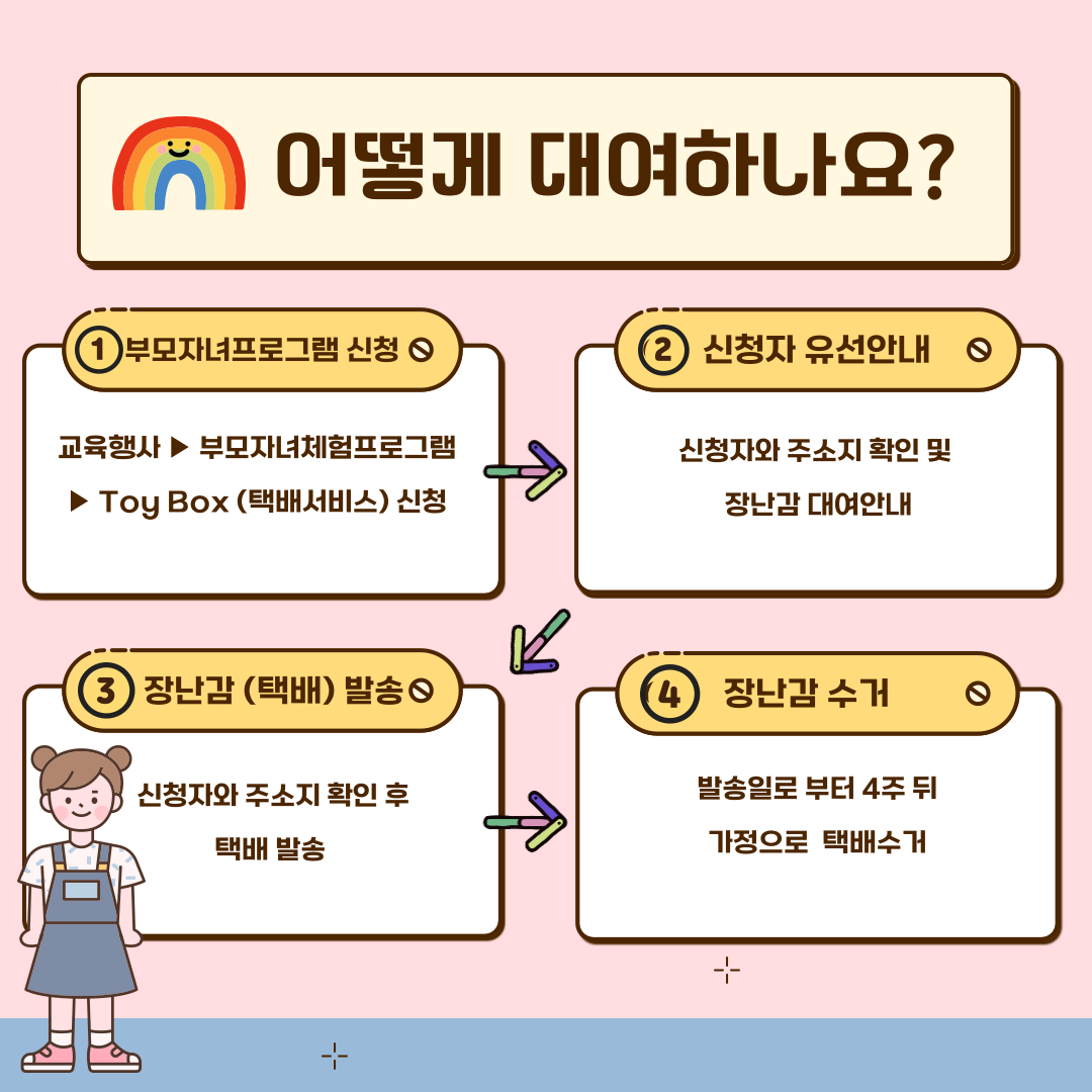 유의사항◆ 택배 발송일: 12/15(월) ◆ 신청 완료 된 이용자 대상으로 개별 연락 드립니다. ◆ 회원정보에서 주소를 꼭!!! 확인해주세요. ◆ 장난감은 모두 택배로 발송되며, 방문픽업은 불가합니다. ◆ 문의 사항은 아래 번호로 전화 주시기 바랍니다. ☎ 054) 474-2017 (내선번호 2) |