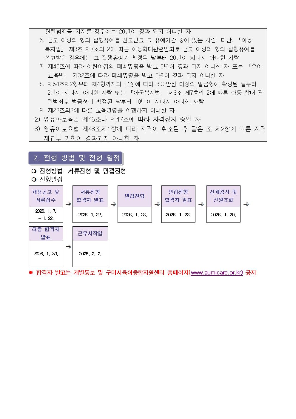 | [구미시육아종합지원센터 공고 제2026-01호] 구미시육아종합지원센터 직원(대체교사) 채용공고 | |||