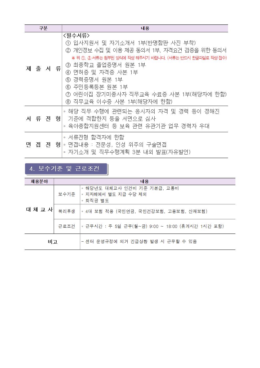 | [구미시육아종합지원센터 공고 제2025-23호] 구미시육아종합지원센터 직원(대체교사) 채용공고 | |||